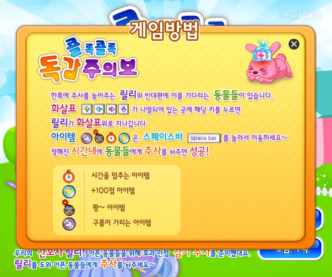 쥬니어네이버 동물농장 콜록콜록 독감주의보 (고급) 플래시게임입니다