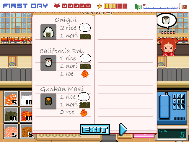 회전초밥집을 운영하는 매니지먼트 장르의 스시 고 라운드 (Sushi Go Round) 플래시 게임입니다