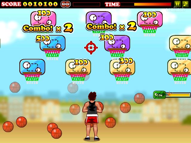 좌우로 움직이는 골대를 향해 슛을 쏘는 게임입니다.