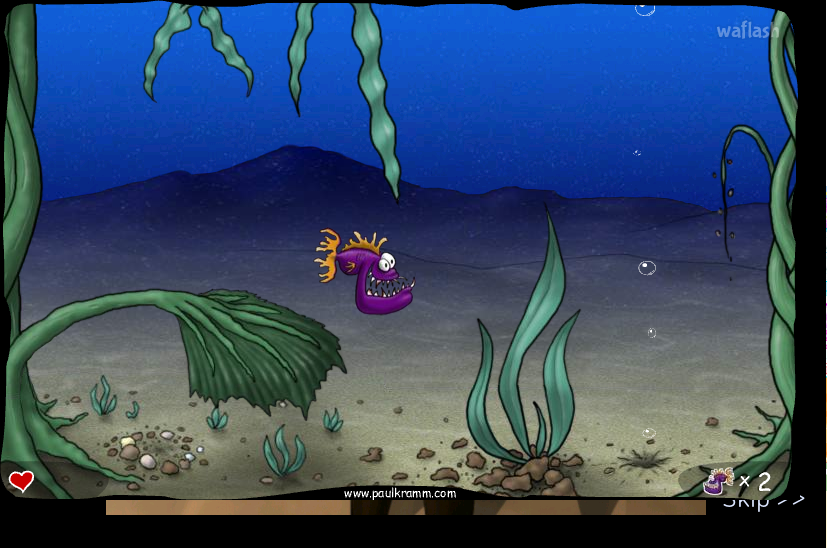 박쥐에게 빼앗긴 알을 찾기 위해 떠나는 피라냐의 모험 The Sea of Glomp 플래시 게임입니다