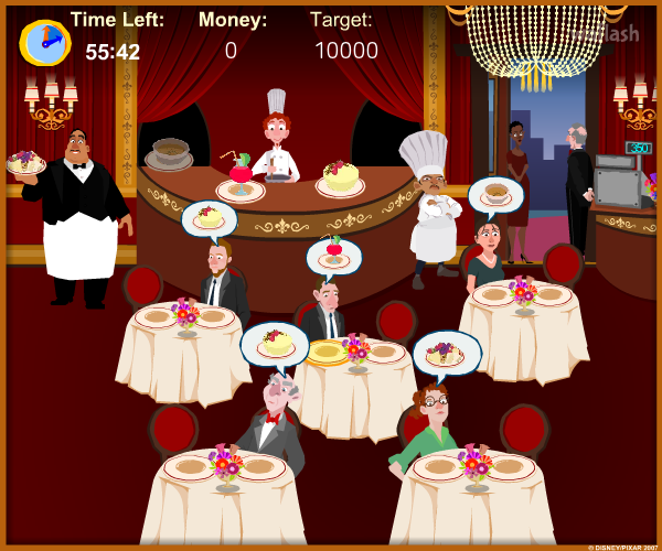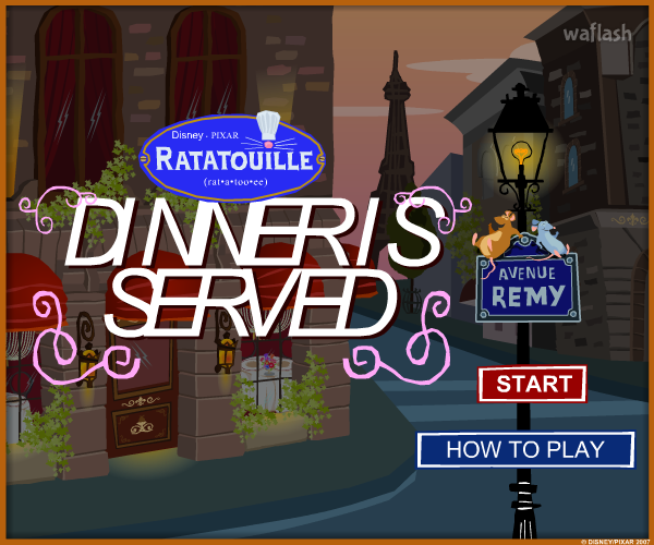 음식을 서빙하는 라따뚜이 디너 이즈 서브드 (Ratatouille - Dinner is Served) 플래시 게임입니다