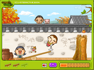 널뛰기를 이용해 춘향을 하늘로 날아올려 감나무에 걸려있는 맛있는 감들을 따먹어 보세요.