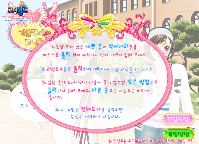 로이월드의 가을캠퍼스 코디룩 플래시게임입니다