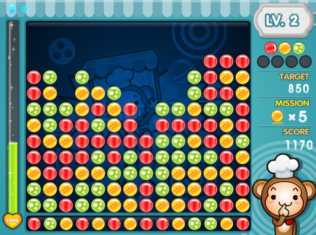 같은 모양의 캔디가 3개 이상 붙어 있으면 마우스로 클릭하여 터트리는
