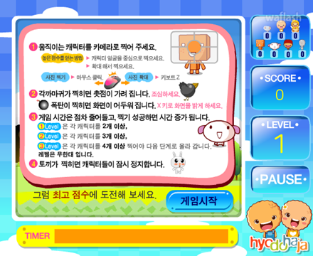 효도하자닷컴의 누룽지 게임 정다운 누룽지 가족 찰칵 사진 찍기 플래시 게임입니다