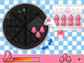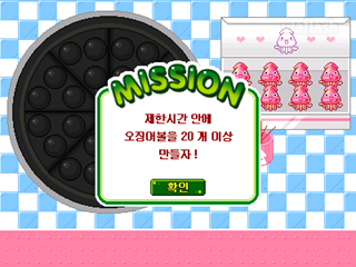제한시간 안에 오징어볼을 20개 이상을 만들어 미션에 성공하는 뿌띠빠띠 미니게임 오징어빵 공장 플래시 게임입니다.