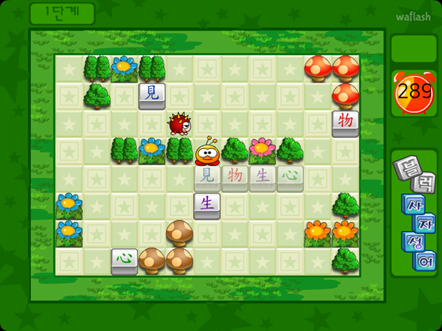 소코반 게임을 사자성어 학습과 결합한 블럭 사자성어 플래시 게임입니다