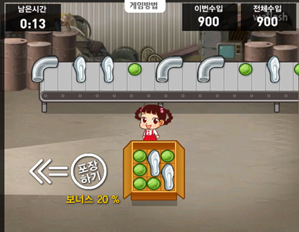상자의 빈 공간에 들어가도록 폐품을 회전(마우스 휠, 키보드 좌/우 방향키) 시킨 후 클릭합니다.