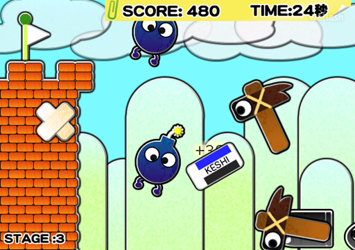 다가오는 적들을 지우개로 문질러 성을 지키는 지우개 디펜스 (消しゴムディフェンス) 플래시 게임입니다