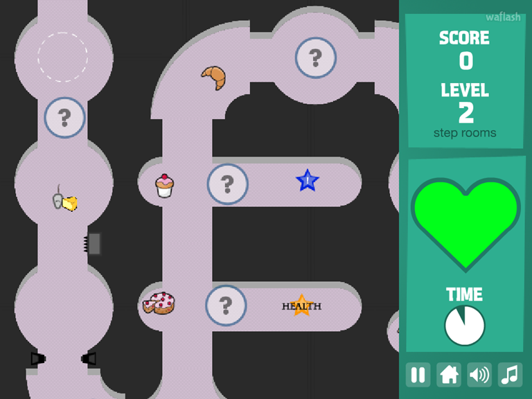 맵 곳곳에 배치된 음식을 먹어 점수를 획득하고 체력을 관리하며 탈출하는 것이 게임의 목표입니다.