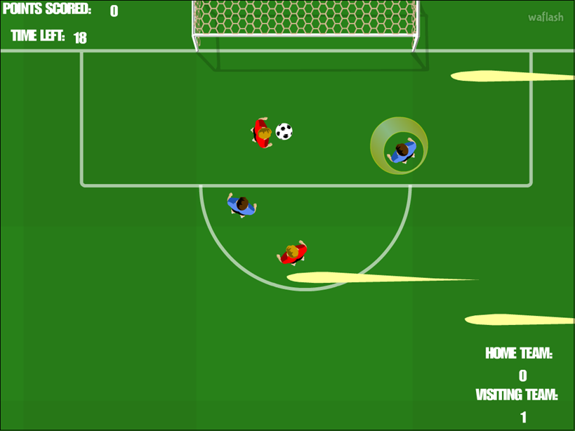탑뷰 시점에서 축구 선수를 조작하여 경기장을 누비며 드리블하고 팀원에게 패스하여 골을 넣는