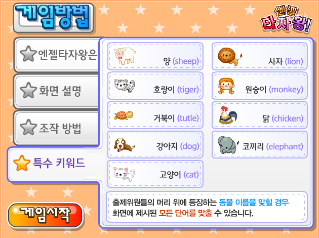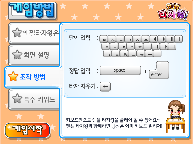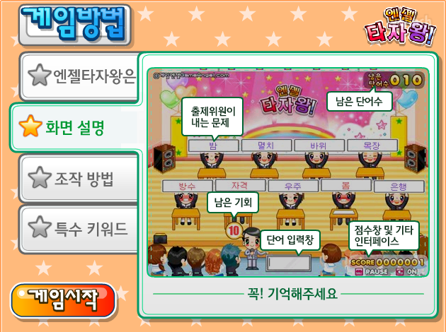웰메이드 타자 연습 게임 "엔젤 타자왕" 플래시 게임입니다