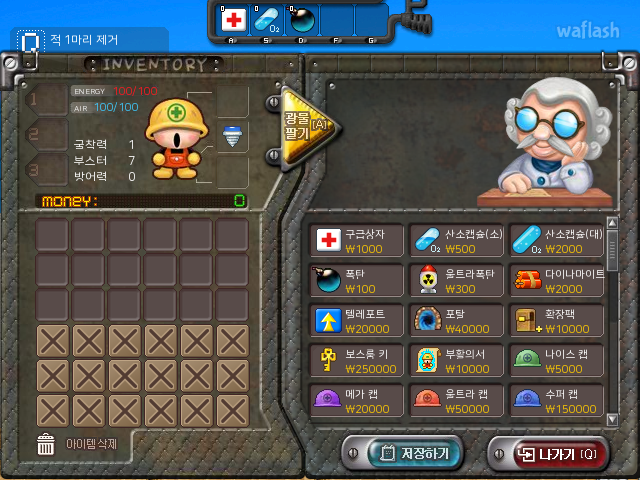 갓겜인 한게임플래시의 굴착소년쿵 플래시게임입니다