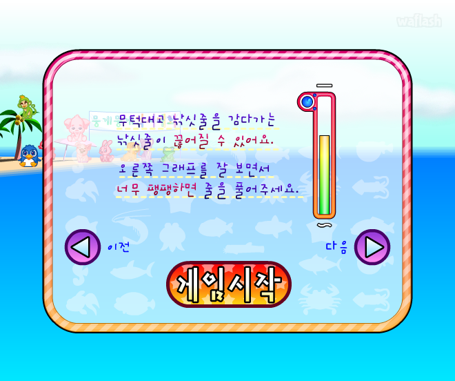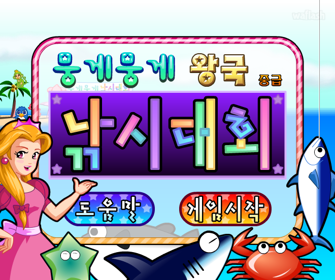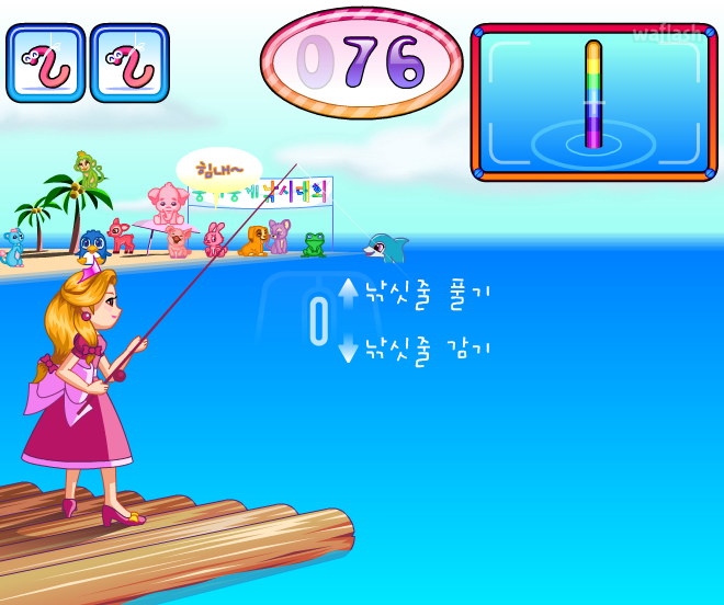 쥬니어네이버 동물농장 뭉게뭉게 왕국 낚시대회 (중급) 플래시 게임입니다