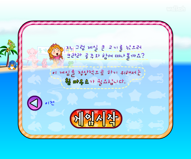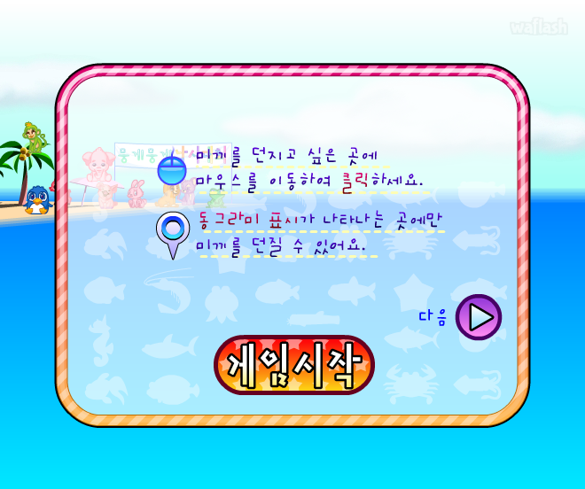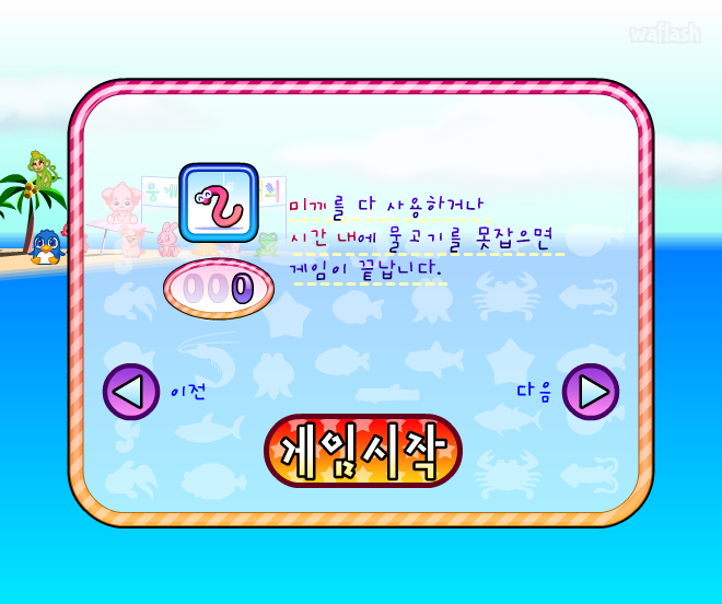 쥬니어네이버 동물농장 뭉게뭉게 왕국 낚시대회 (고급) 플래시 게임입니다