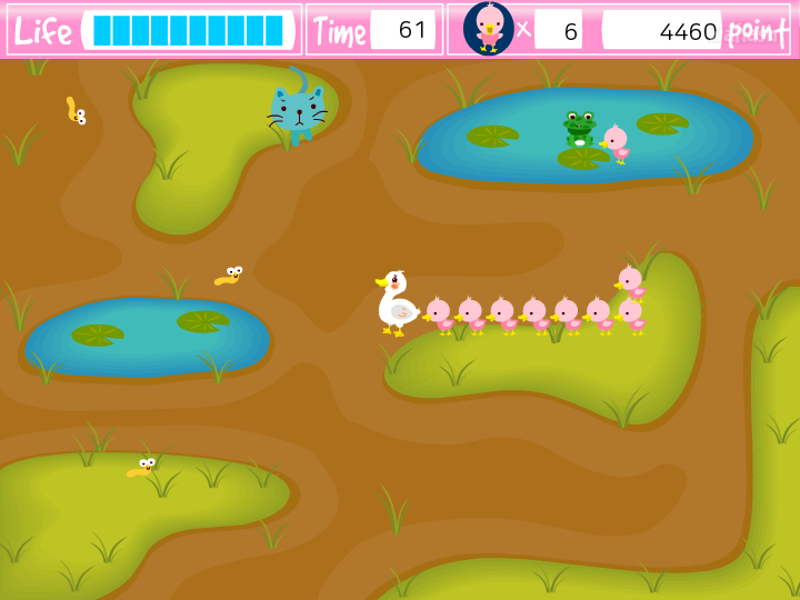 스네이크게임 형식의 디어유게임 아기 오리 찾기 플래시 게임입니다