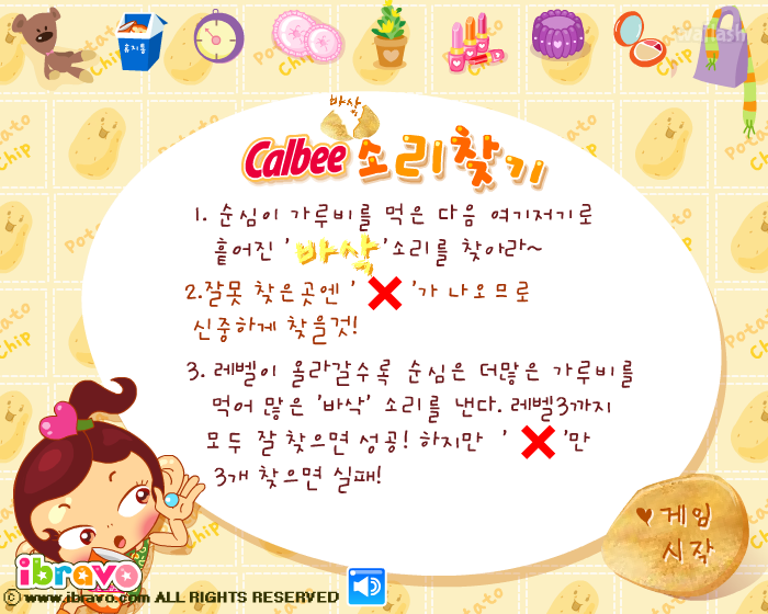 가루비 Calbee 바삭 소리찾기 플래시게임입니다