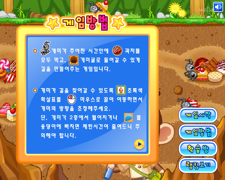 LG사이언스랜드의 개미 길찾기 플래시 게임입니다