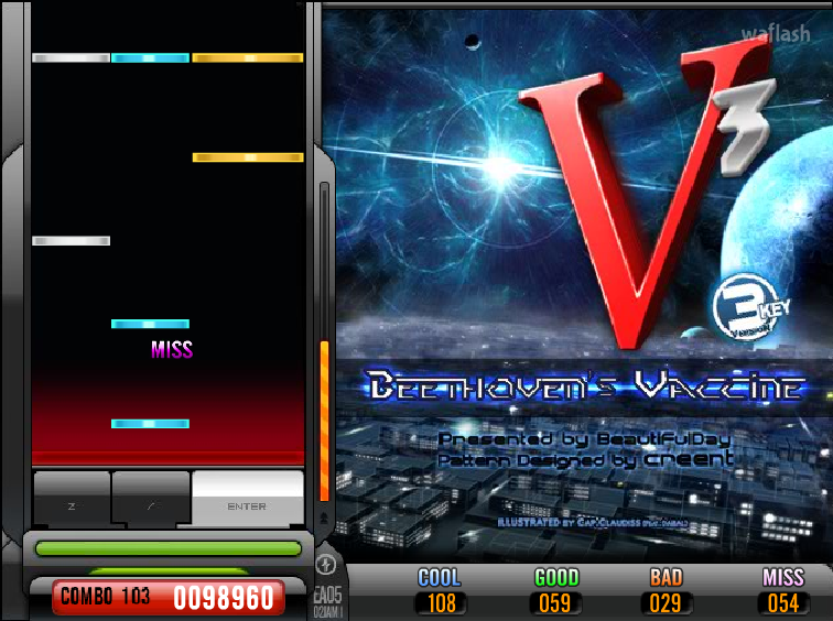 리듬게임 엔젤 오투잼 (O2Jam) 맛보기 버전의 플래시 게임입니다