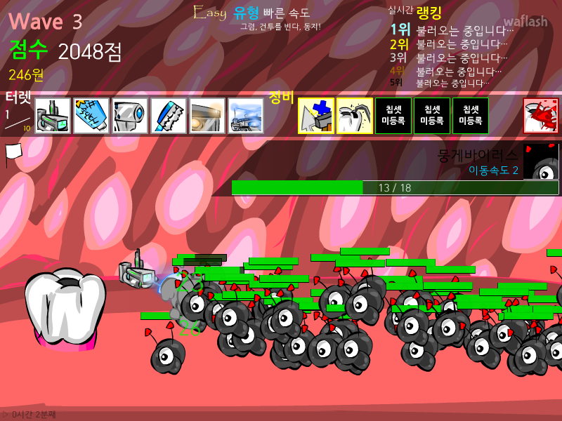 쪼리핑님과 ㅋㅋㅋ지존님의 합작품인 충치디펜스 버전 2.2 플래시 게임입니다