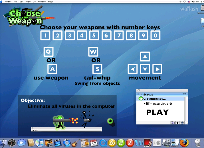 컴퓨터에 침투한 바이러스를 제거하는 츄즈유어웨폰 (Choose Your Weapon 1) 플래시 게임입니다