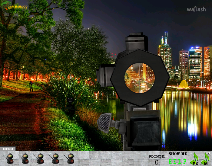 숨어있는 블랙 스틱맨 저격수들을 찾아 제거하는 스나이퍼 헌터 5 (Sniper Hunter 5) 플래시 게임입니다