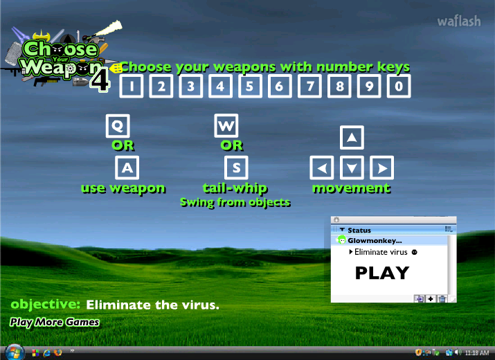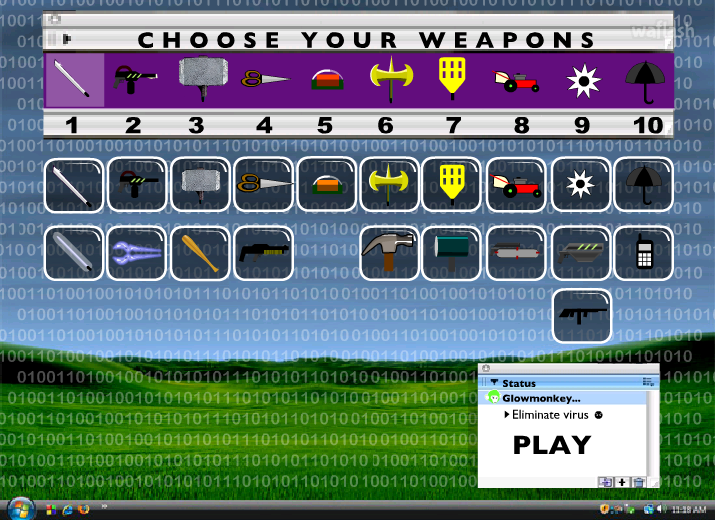 컴퓨터에 침투한 바이러스를 제거하는 츄즈유어웨폰 4 (Choose Your Weapon 4) 플래시 게임입니다