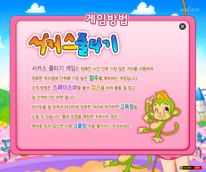 쥬니어네이버 동물농장 서커스 줄타기 (초급) 플래시게임입니다