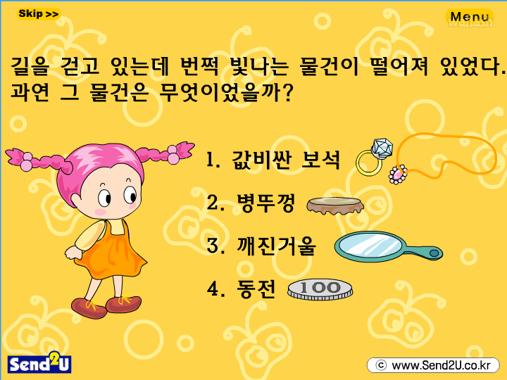 땅에 떨어져 있는 물건으로 낙천성과 비관도를 알아보는 심리테스트 플래시 게임입니다