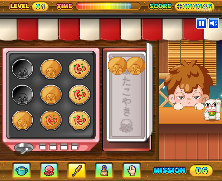 제한시간내에 문어빵을 만들어 손님에게 주는 문어빵 타이쿤 플래시 게임입니다