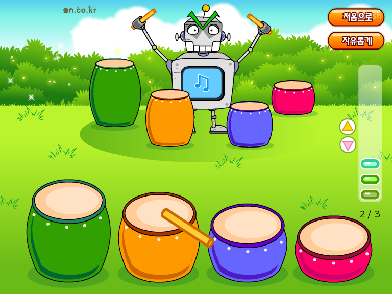 로봇이 친 대로 북을 따라치는 기억게임인