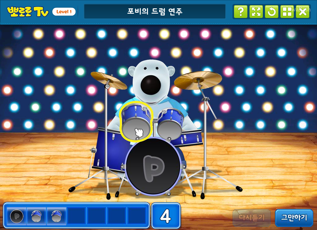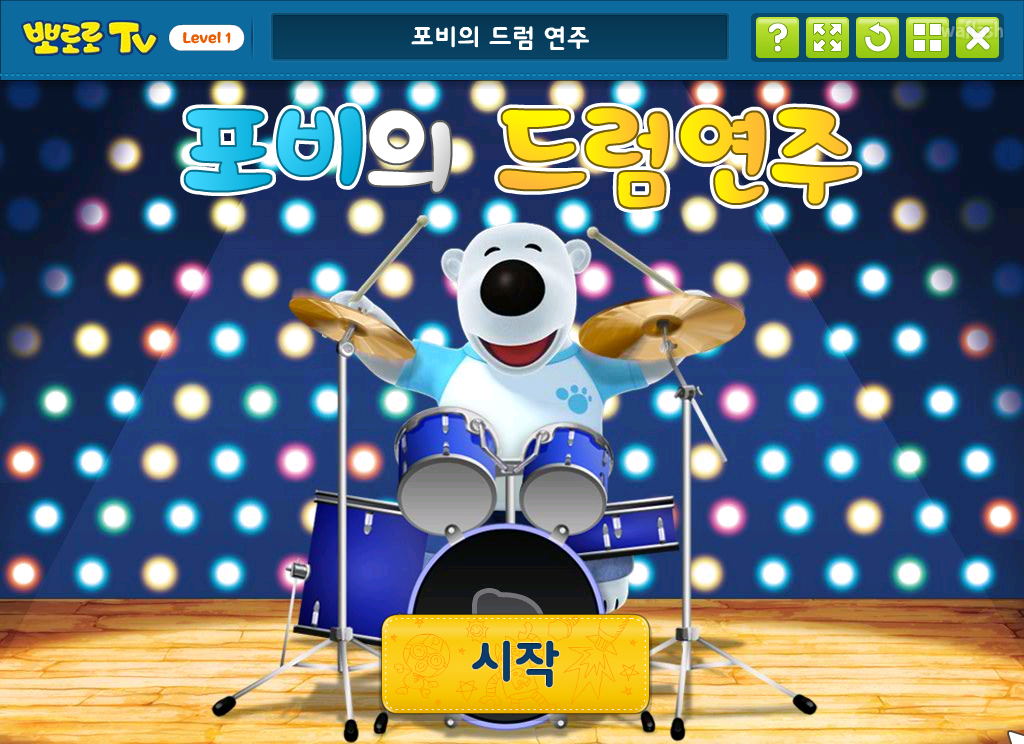 뽀로로 놀이교실: 해리의 음악·음률 놀이 - 포비의 드럼 연주 플래시 게임입니다