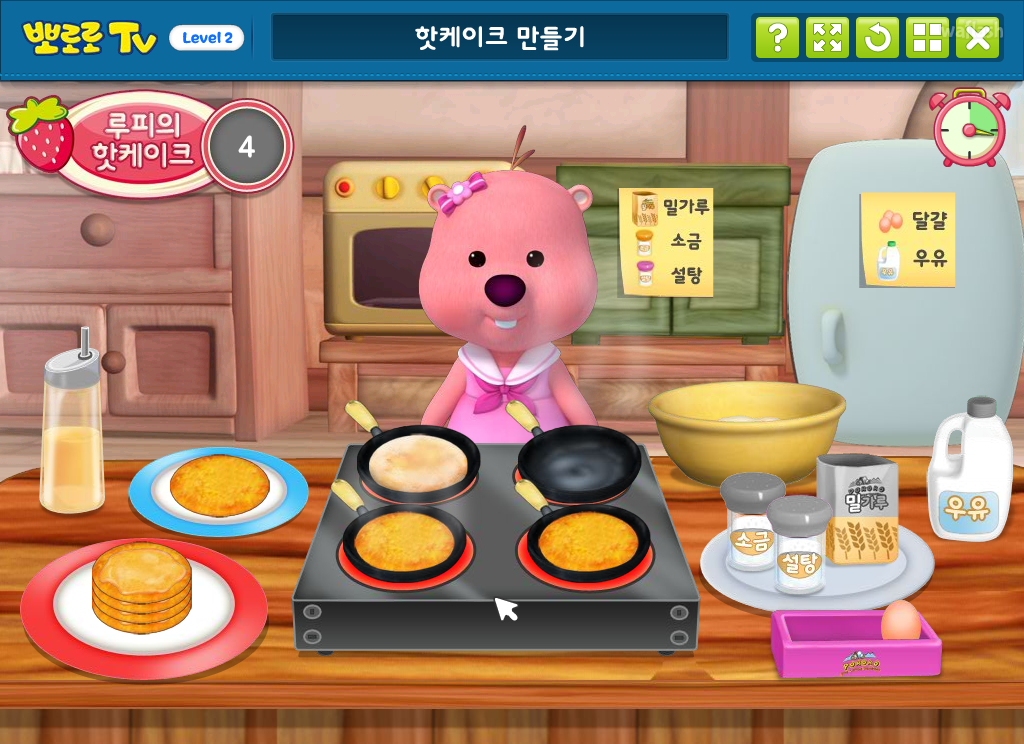 뽀로로 놀이교실: 루피의 언어교실 - 핫케이크 만들기 플래시 게임입니다