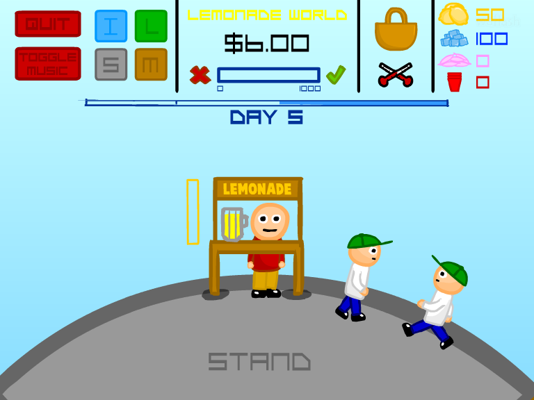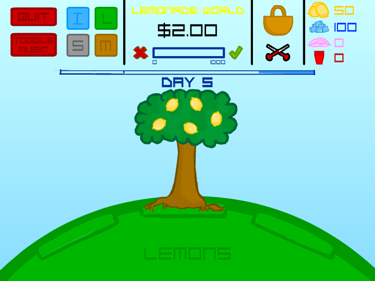 레모네이드 나무를 키워 수확하고 판매 운영하는 레모네이드 월드 (Lemonade World) 플래시 게임입니다