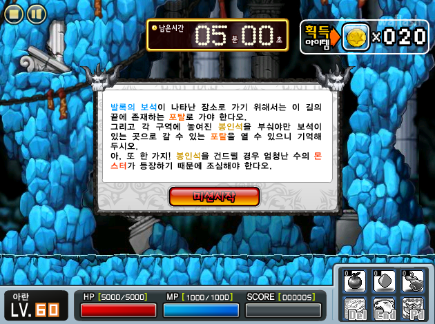 메이플스토리 엔젤메이플 트리스탄의 부탁 플래시 게임입니다