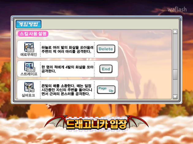 스킬 사용: Delete, End, PageDown