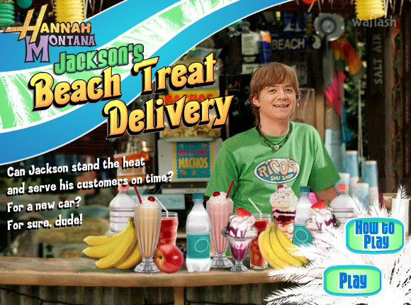 한나 몬타나: 잭슨 비치 트릿 딜리버리 (Jackson's Beach Treat Delivery) 플래시 게임입니다