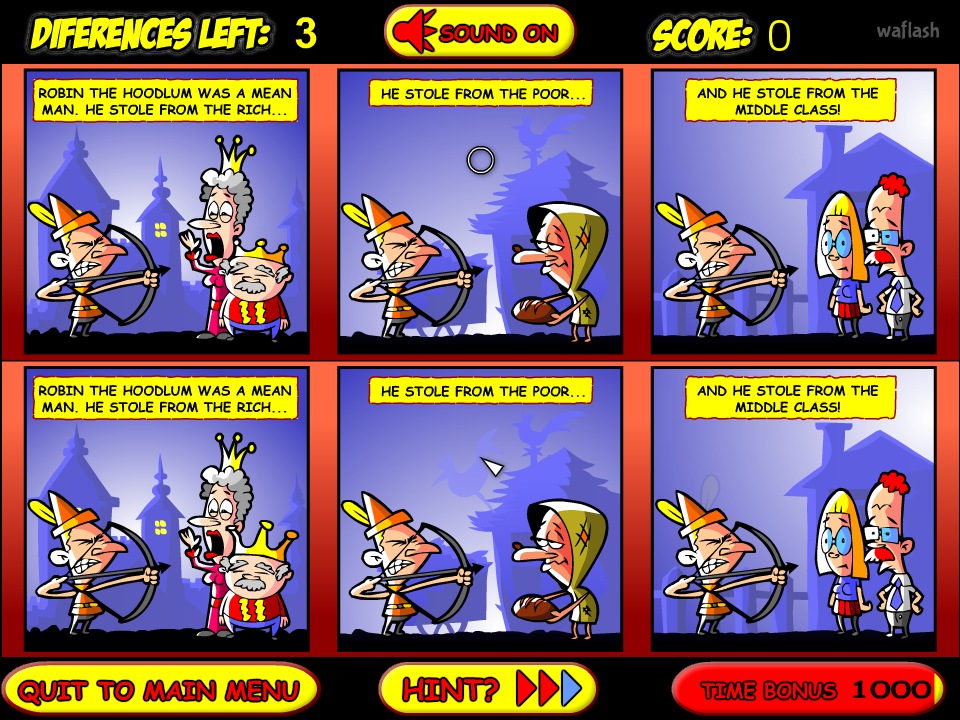 틀린그림찾기 Robin The Hoodlum - A Spot the Difference Comic 플래시 게임입니다
