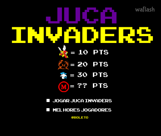 게임을 시작하려면 JOGAR JUCA INVADERS 를 클릭하세요