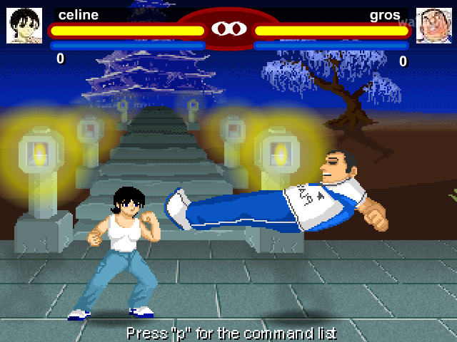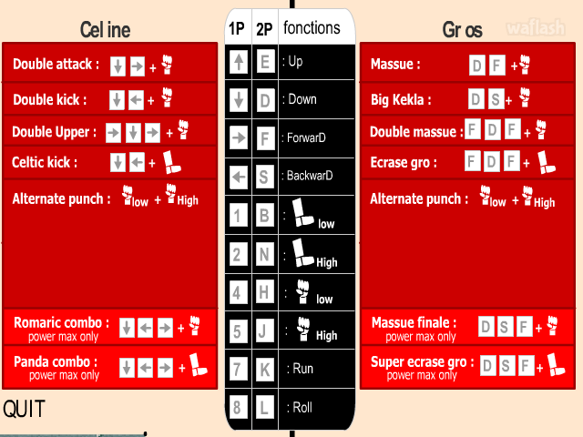 1P - 이동: 방향키, 공격: 키패드 1,2,4,5,7, 캐릭터선택: 스페이스바