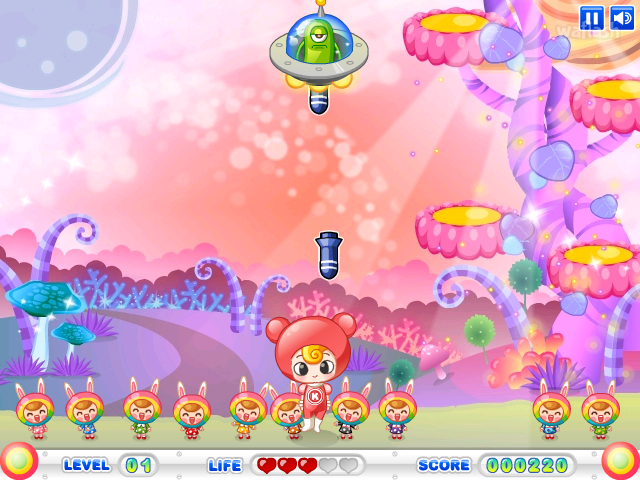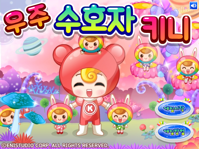 키니의 꼬마 친구들 별에 침입한 외계인이 쏘는 폭탄을 막는 키니위니 우주 수호자 키니 플래시 게임입니다