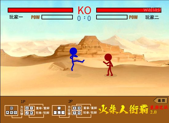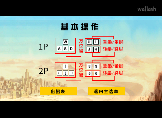 <1P> 이동: W,A,S,D, 공격: U,I,J,K