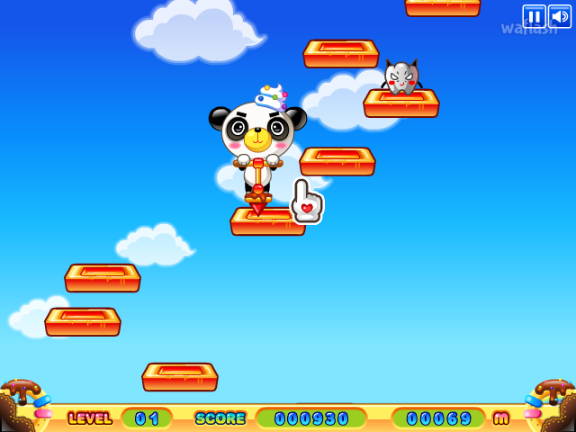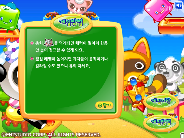 슈클탐험대 친구들이 과자를 밝고 점프하여 높이 올라가는 게임인