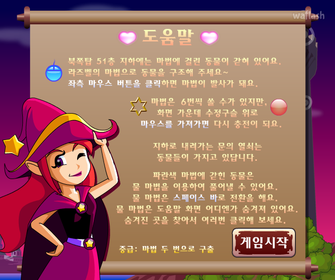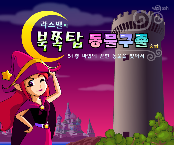 쥬니어네이버 동물농장 라즈벨의 북쪽탑 동물구출 (중급) 플래시게임입니다